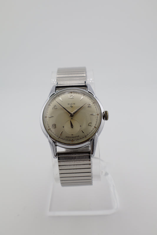 Vintage Elgin Shockmaster 1950s Patina Dial Cal. 687 Manual Wind Men's Watch