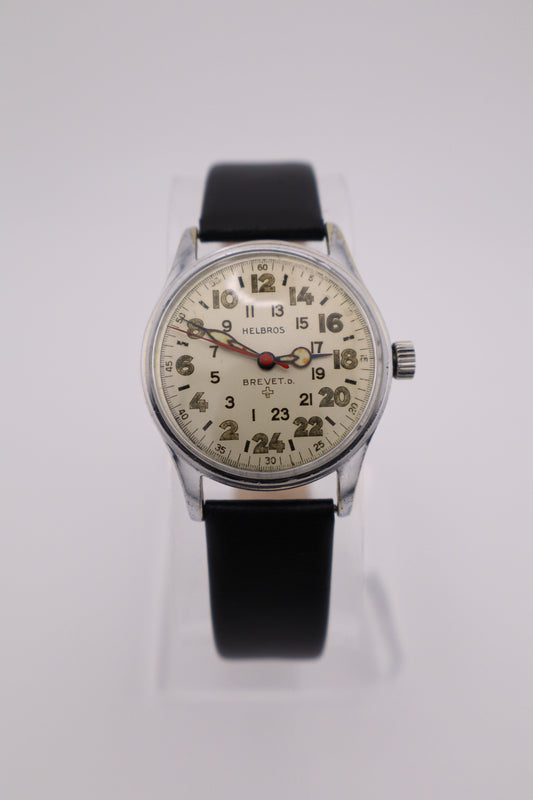 Vintage Helbros 1950s Brevet 24-Hours Military Manual Wind Swiss Men's Watch - New Leather Band
