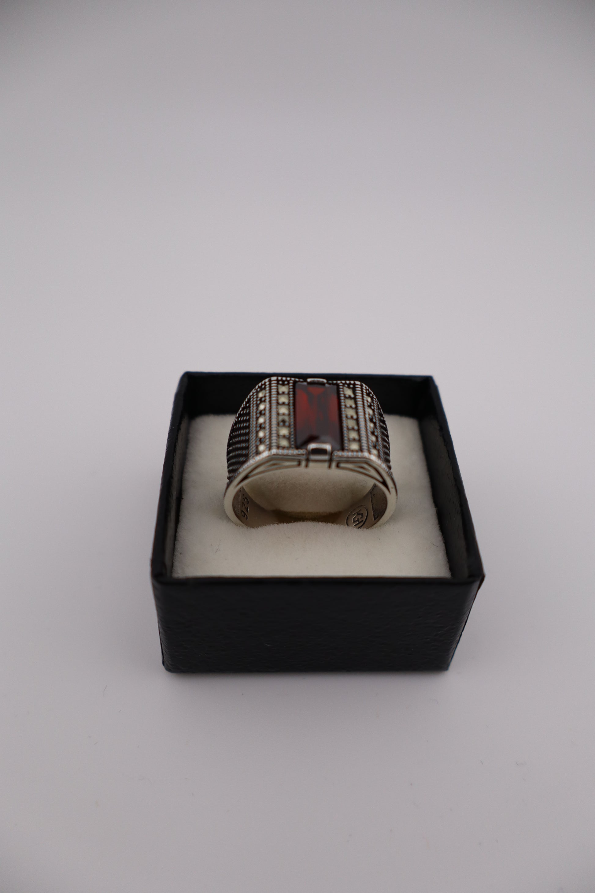 Sterling Silver Men’s Ring with Red Rectangular Stone – Size 12 (925, 8g / 5.3 dwt)