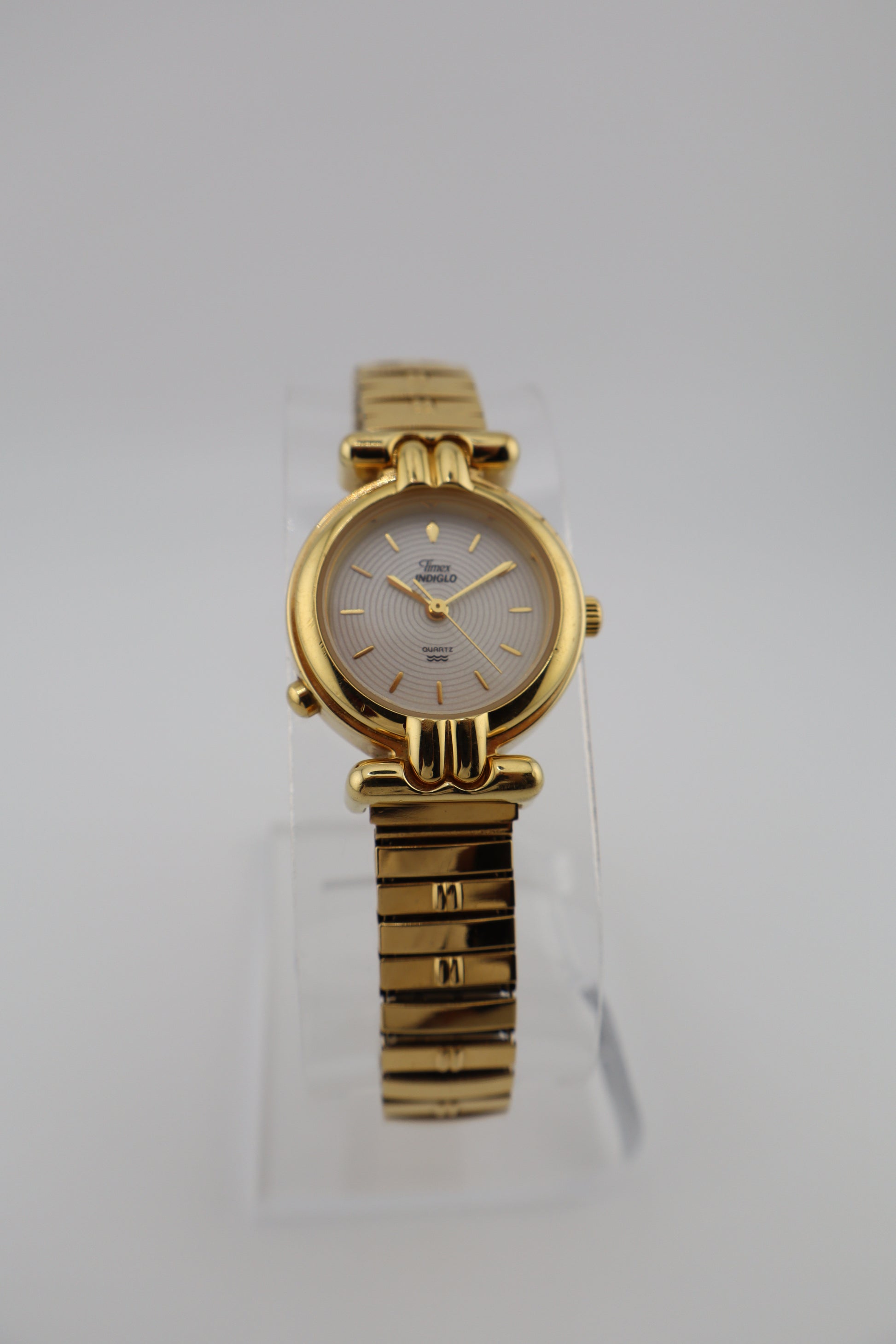 Vintage 1990s Timex Indiglo Gold-Tone Detailed Dial Quartz Women's Watch w/ Expansion Band
