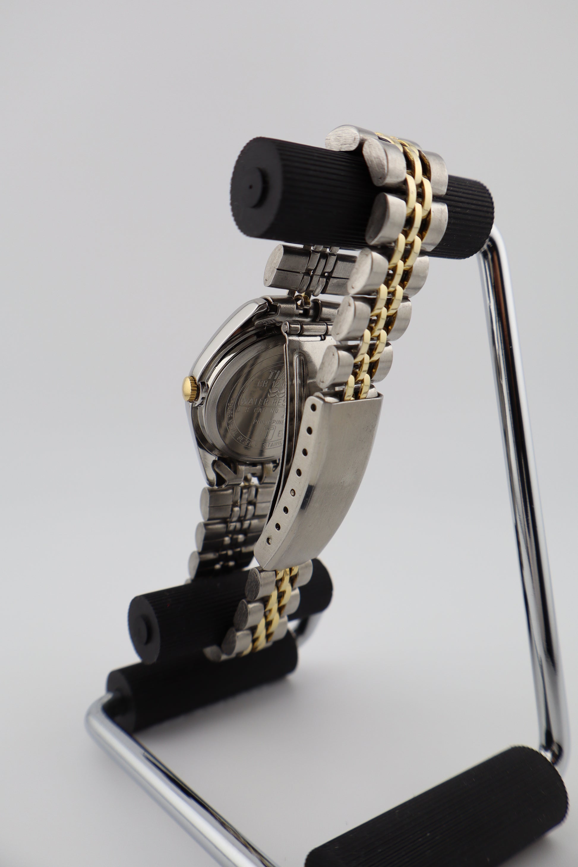 This Timex Indiglo women's quartz watch features a sleek two-tone stainless steel design with a gold-tone fluted bezel, a champagne-colored dial with luminous gold-tone hands and indices, and a convenient date window at the 3 o’clock position. It is powered by a reliable quartz movement and includes Timex’s signature Indiglo night-light feature for visibility in low light. The jubilee-style bracelet ensures a comfortable fit, making it a stylish and practical choice for everyday wear. The watch is in excellent working condition with minimal signs of wear, a clear crystal, and a fully functional movement, making it a fantastic accessory or collectible piece.