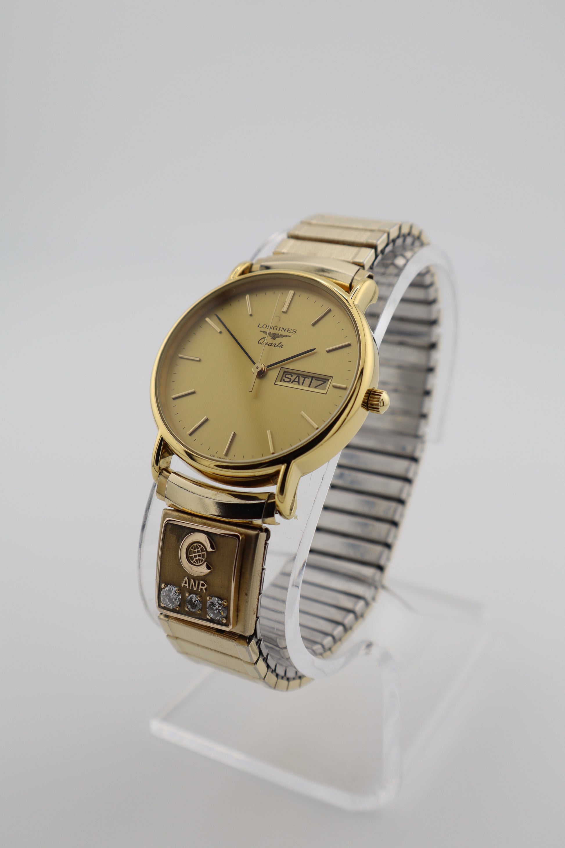 Vintage Longines Swiss Quartz Men’s Watch Gold Tone | Day-Date | Box & Papers | Diamond Award Charm