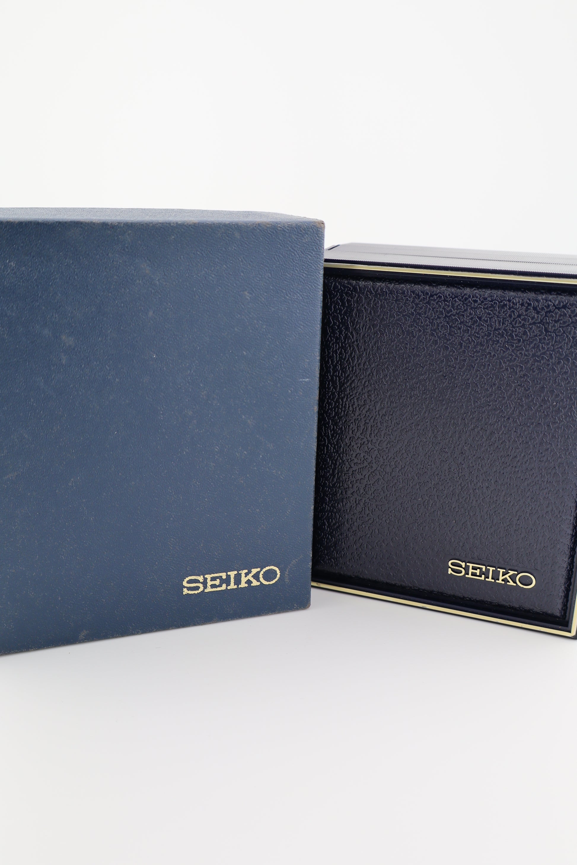 Vintage Seiko SQ 1984 Quartz 6923-7099 Day/Date Blue Dial Hex Crystal Full Set Box Papers Links
